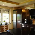 The Sztum accommodation offers self-catering amenities, such as a shared kitchen, and an outdoor dining area for guests' convenience. There is also an electric kettle, a refrigerator, and an oven available in the kitchen.